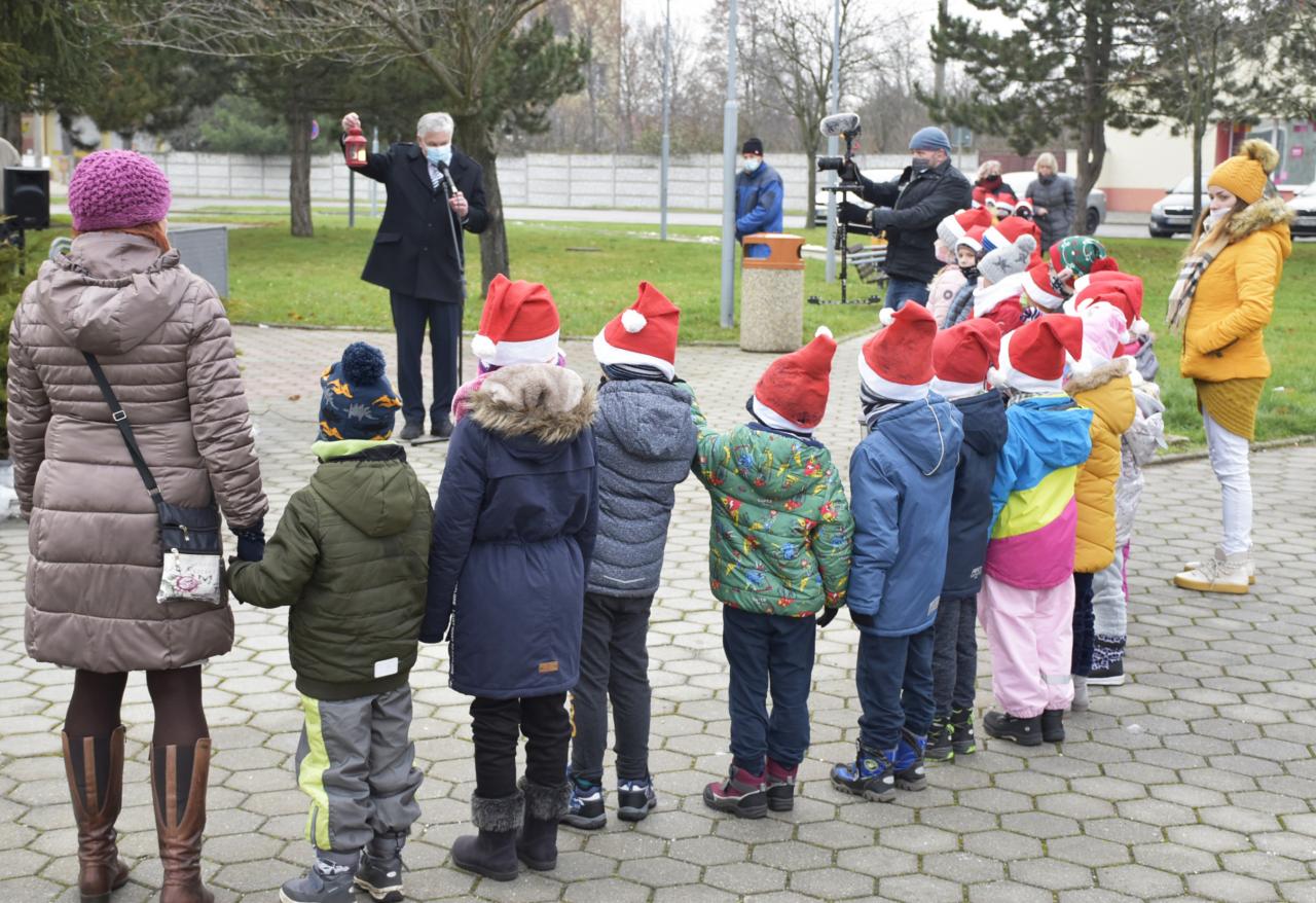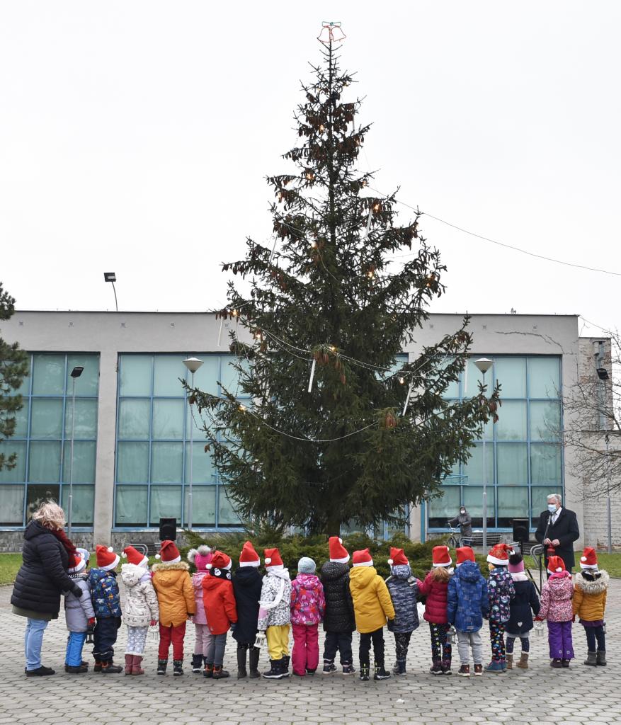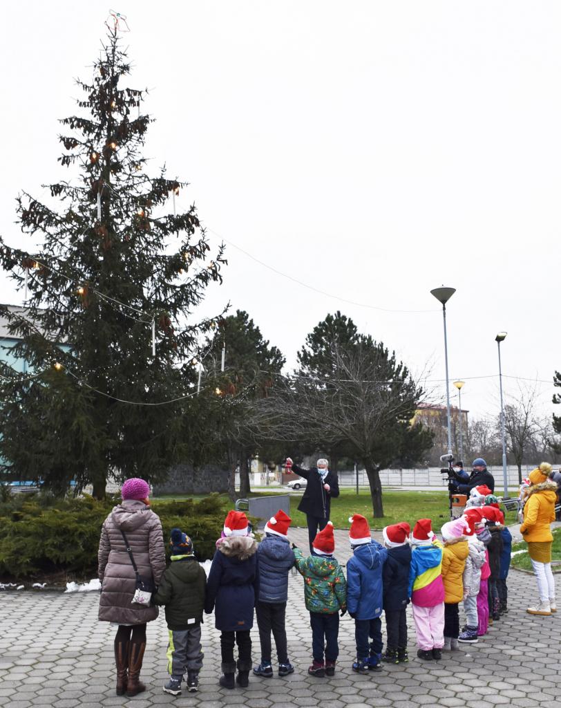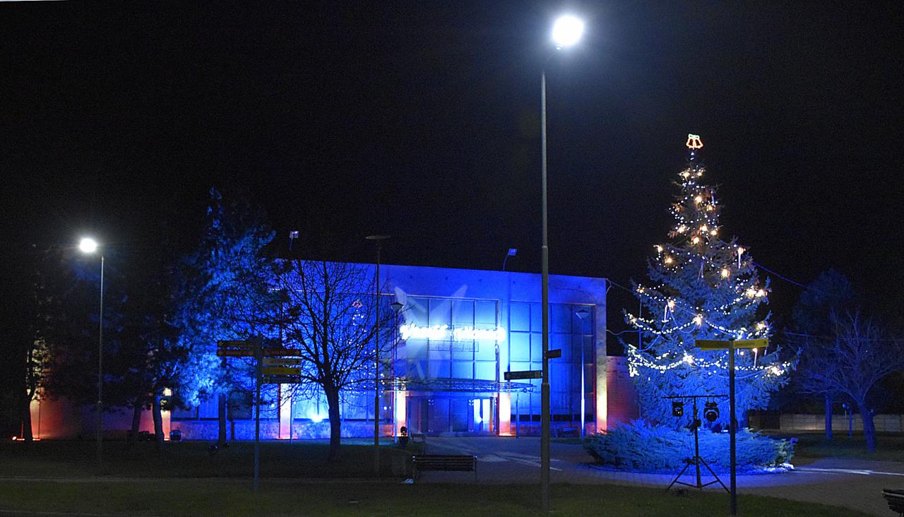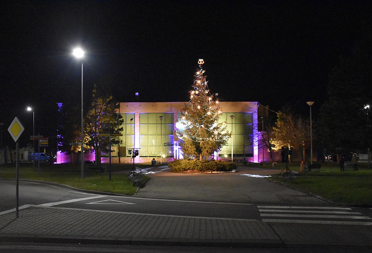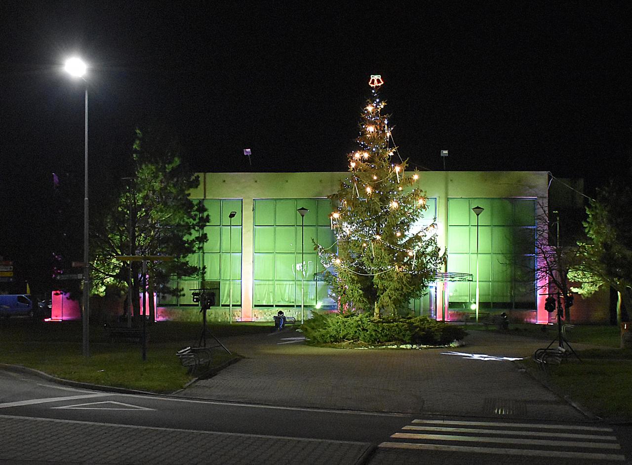 Rozsvecovanie vianočného stromčeka (trocha netradične) a večerné svetelné efekty v parku pri dome kultúry