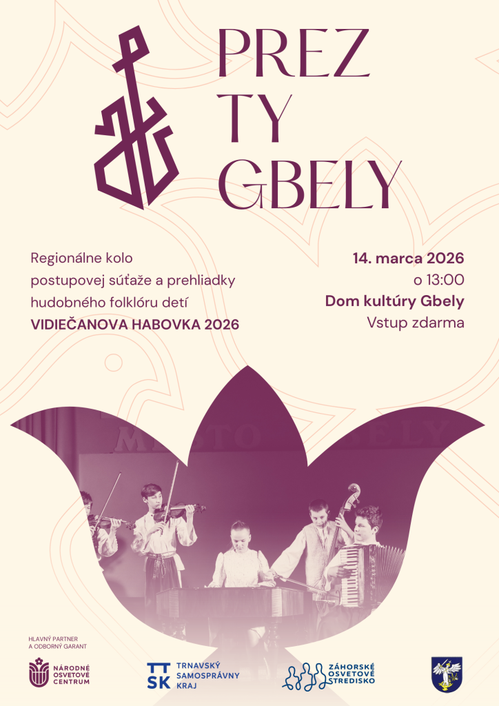 Regionálne kolo postupovej súťaže a prehliadky hudobného folklóru detí Vidiečanova Habovka 2026 sa uskutoční v Gbeloch pod názvom Prez ty Gbely.