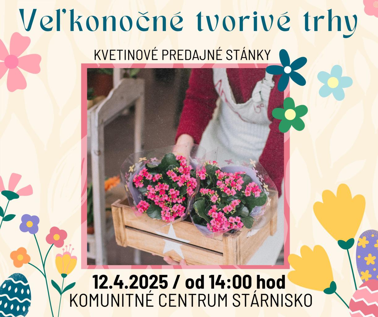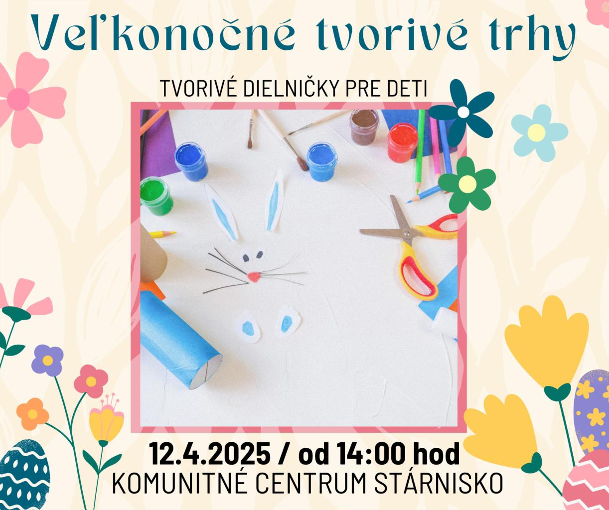 Mesto Gbely vás pozýva na Veľkonočné tvorivé trhy, ktoré sa uskutočnia v sobotu 12. apríla 2025 od 14:00 v okolí Mestského úradu a v Komunitnom centre Stárnisko.