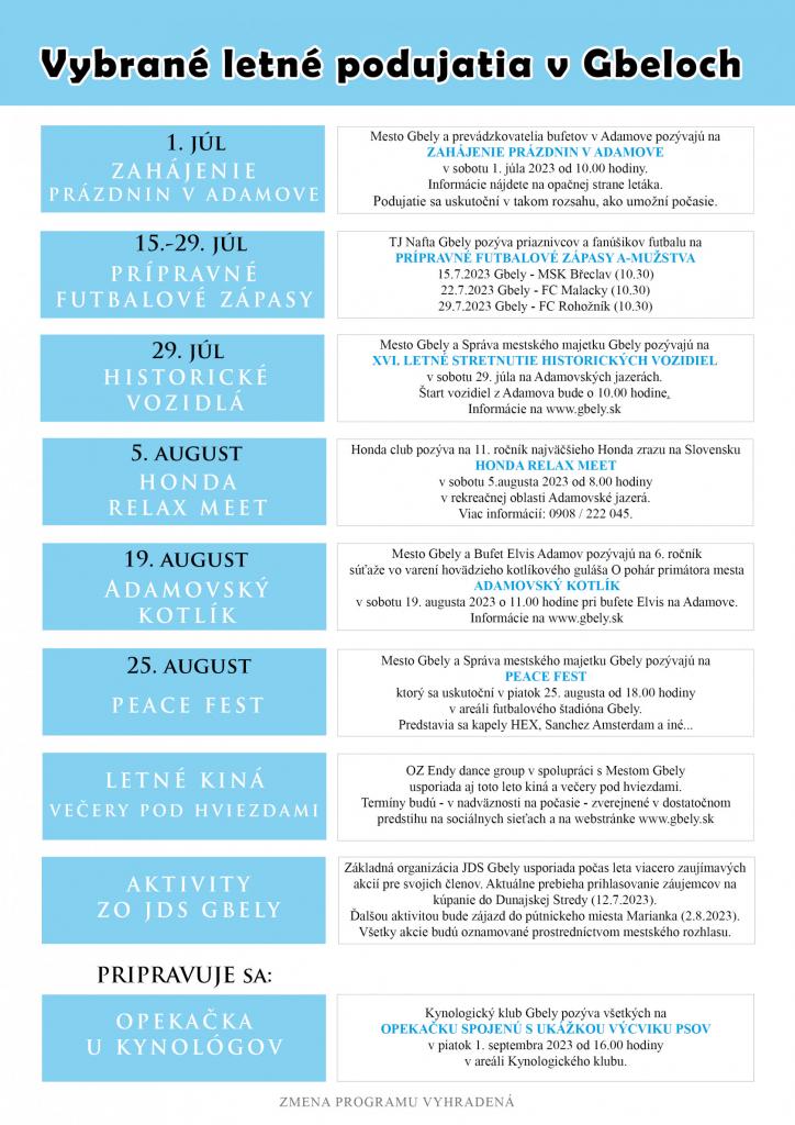 Vybrané letné podujatia v Gbeloch